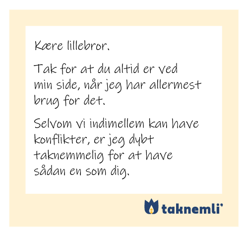 Har du forslag til gode måder, man kan vise andre sin taknemmelighed på, så hører vi meget gerne fra dig. Skriv til os her, så udbygger vi løbende guiden her med tips og idéer.